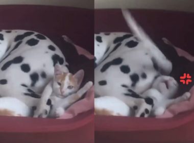 橘白貓與大麥町躺一窩 牠被「瘋狂甩尾」超不悅:夠了喔!