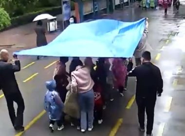 老師手撐遮雨布護送314名幼童放學 半小時來回12趟暖舉被讚爆