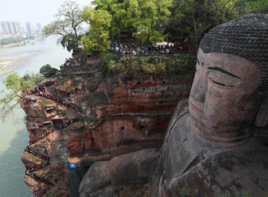 重慶北碚45度破紀錄! 樂山大佛「腳趾」暴露乾旱水位差