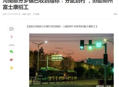 鄭州富士康招工傳河南省下鄉抓壯丁 一村至少一人